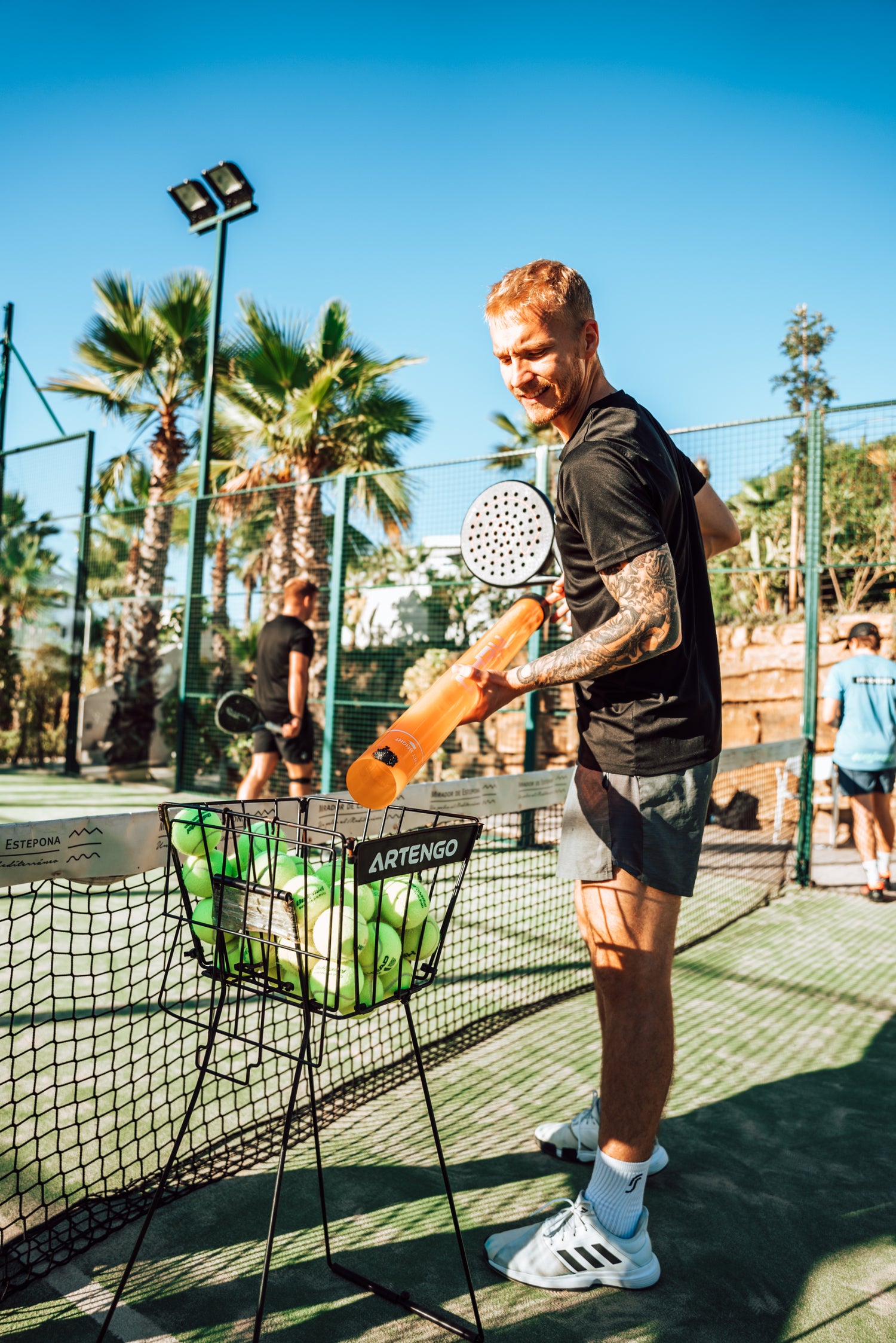- Välkomstpaket: Vatten, snacks, dryck, padelbollar och lindor